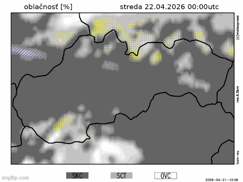 Obr. 2 Vývoj oblačnosti podľa modelu ICON-EU.