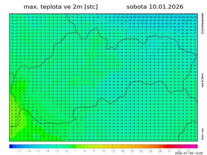 Obr. 4 Maximálna denná teplota podľa modelu ICON-EU.