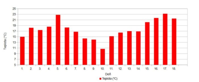 Obr. 1: Maximálna denná teplota v Hurbanove v dňoch 1. – 18. 4.