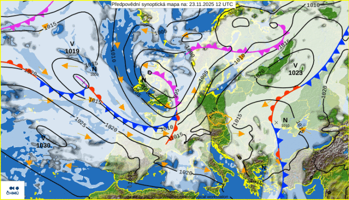 Obr.1: Synoptická situácia – nedeľa (23. 11.)