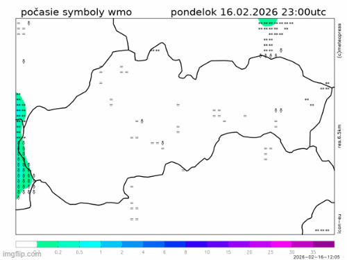 V utorok očakávame na západe a severe miestami sneženie, v nižších polohách to môže byť aj dážď so snehom s možnosťou tvorby poľadovice. V stredu sa zrážky spočiatku vyskytnú miestami a to naprieč Slovenskom. Opäť to bude mix zrážok, s tým, že v nižších polohách budú zrážky opäť zmiešané. Výdatnejšie zrážky by sa mali začať vyskytovať až vo štvrtok. V stredu už bude oblačnosť premenlivá a zrážky môžu byť aj vo forme prehánok, prípadne sa najmä východe môže vyskytnúť aj zriedkavá búrka.