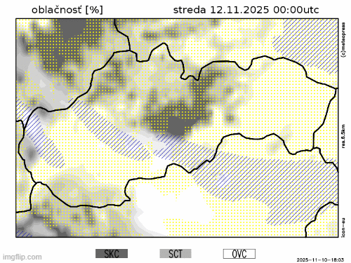 Obr. 5: Predpokladaný vývoj oblačnosti na Slovensku v stredu (12. 11.) podľa modelu ICON