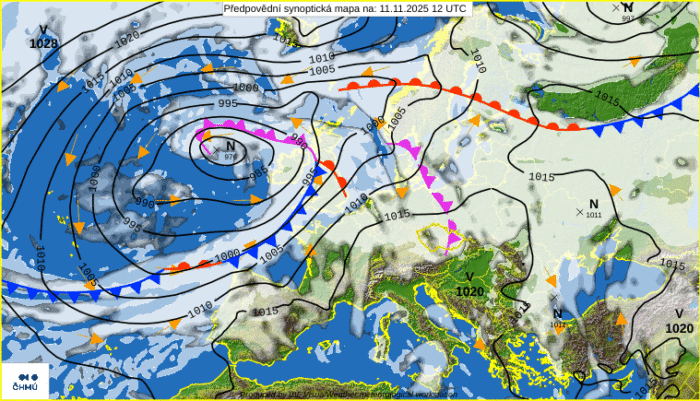 Obr.1: Synoptická situácia – utorok (11. 11.)