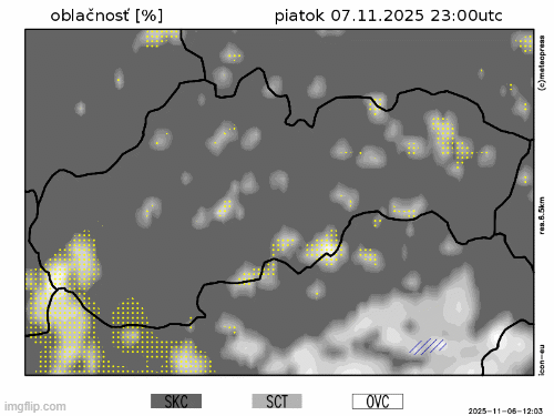 Cez víkend preberie kontrolu nad počasím plytká níž vo vyšších vrstvách atmosféry. Očakávame, že sa ochladí aj vo výškach a maximá napr. vo výške 1500 m n. m. budú na úrovni okolo 3 °C. Teplotné inverzie tak budú postupne miznúť. V sobotu zrána môže byť ešte v dolinách a kotlinách hmlisto ale postupne bude oblačnosť mohutnejšia aj inde. Cez víkend preváži veľká, iba ojedinele zmenšená oblačnosť. Zrážky sa očakávajú len miestami, ale budú zväčša len slabé. Vietor bude prevažne slabý.