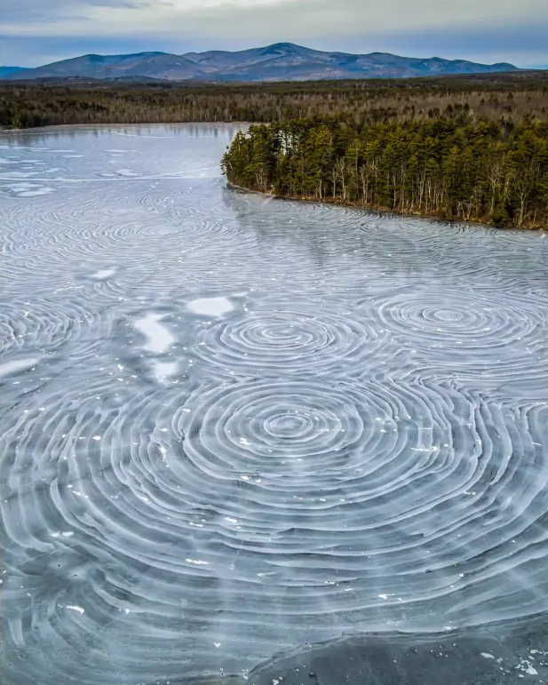 Obr. 1: Ľadové kruhy zaznamenané na jazere New Hampshire (2020)