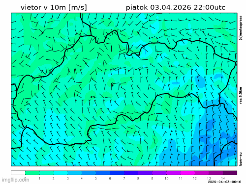 Vietor sa pri prechode frontu aspoň prechodne zmení zo severného na západný, neskôr opäť až na severozápadný. Jeho priemerná rýchlosť dosiahne do 30 km/h.