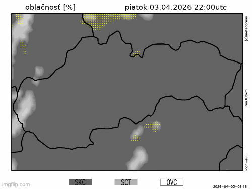 Spočiatku bude jasno až polooblačno. S príchodom frontu sa už zrána a predpoludním oblačnosť od severozápadu zväčší a nie je vylúčený ojedinele občasný dážď alebo prehánky.