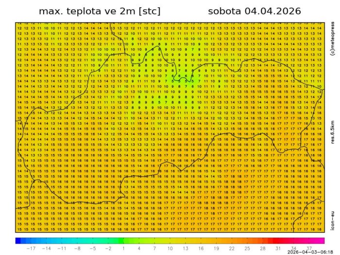 Maximálna denná teplota dosiahne 12 až 17, na severe okolo 10 °C.