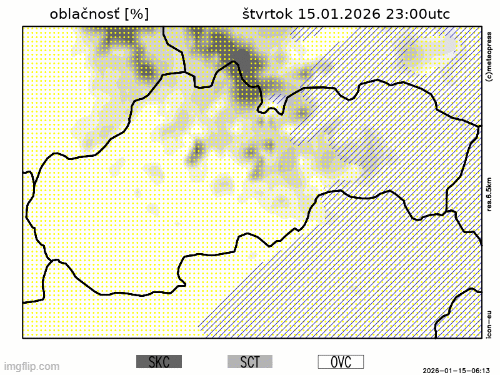 Obr. 1: Predpoveď oblačnosti na piatok a sobotu (16. a 17. januára) podľa modelu ICON.