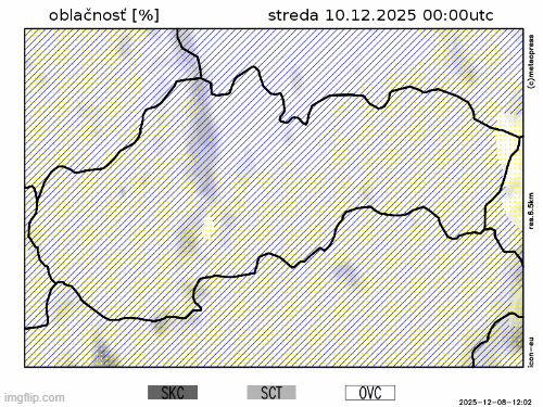 Obr. 5: Predpokladaný vývoj oblačnosti na Slovensku v stredu (10. 12.) podľa modelu ICON