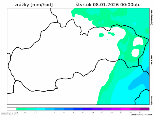 Obr. 3: Predpokladaný vývoj zrážkovej činnosti na Slovensku vo štvrtok (8. 1.) podľa modelu ICON
