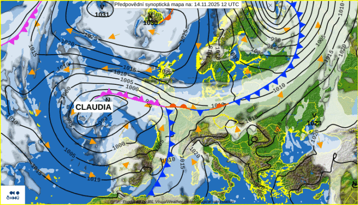 Obr.1: Synoptická situácia – piatok (14. 11.)