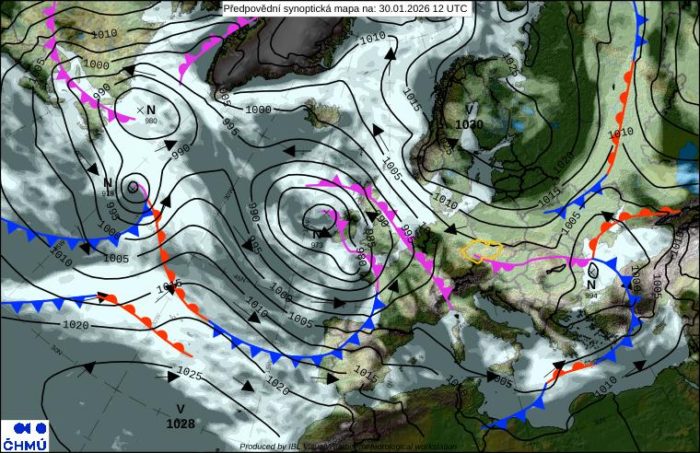 Obr. 1: Synoptická situácia – piatok (30. 1.)