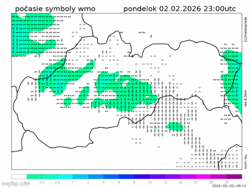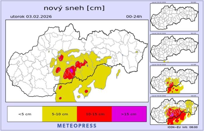 To sa odzrkadlí aj na skupenstve zrážok. Na väčšine územia bude v utorok ešte snežiť. V noci na stredu už ale začne hranica sneženia narastať a v stredu večer sa presunie do polôh nad asi 1000 m n. m.. Následne vo štvrtok očakávame sneženie prevažne len vo vysokých horských polohách.