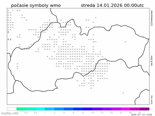 V noci oblačno až zamračené, lokálne hmlisto. Ojedinele mrholenie – aj mrznúce, na východe väčšinou sneženie. Cez deň oblačno až zamračené, lokálne hmlisto. Ojedinele slabý dážď, mrholenie – aj mrznúce, na východe slabé sneženie.
