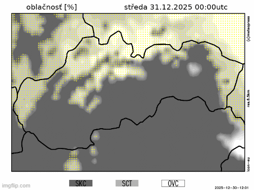 Obr. 2: Predpokladaný vývoj oblačnosti na Slovensku v stredu (31. 12.) podľa modelu ICON-EU