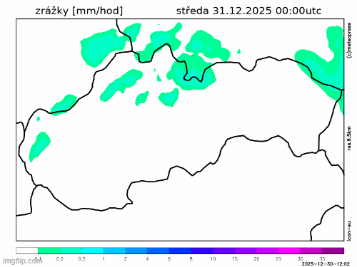 Obr. 3: Predpokladaný vývoj zrážok na Slovensku v stredu (31. 12.) podľa modelu ICON-EU