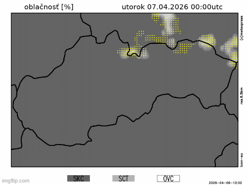 Obr. 2: Predpokladaný vývoj oblačnosti na Slovensku v utorok (7. 4.) podľa modelu ICON