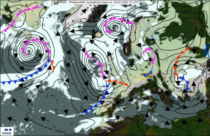 Obr. 1: Synoptická situácia – streda (18. 2.)