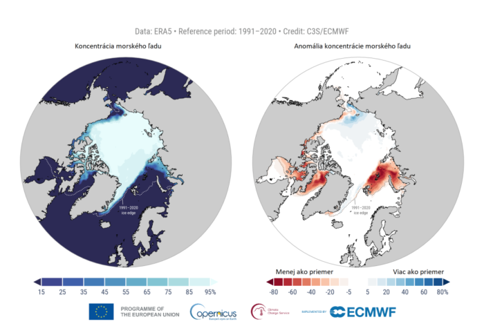 V uplynulých dňoch sa pohľady klimatológov opäť upierajú nad oblasť Arktídy. Morské zaľadnenie v tejto oblasti totiž dosahuje až rekordne nízke hodnoty. Po 13. tom najnižšom minime od roku 1979 dosiahnutom 7. septembra, by malo množstvo ľadu v zimnom období rýchlo narastať. Podľa správy európskej služby Copernicus bola v novembri 2025 zaznamenaná druhá najnižšia hodnota rozlohy ľadu (po roku 2016) v histórii meraní. Najviac ľadu chýbalo v oblasti východne od Svalbardu v oblasti Barentsovho a Karského mora (v okolí Novej Zeme) a tiež v oblasti Baffinovho zálivu a na severozápade Kanady.