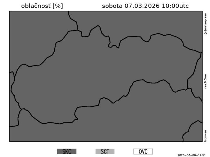 Obr. 2 Vývoj oblačnosti podľa modelu ICON-EU.
