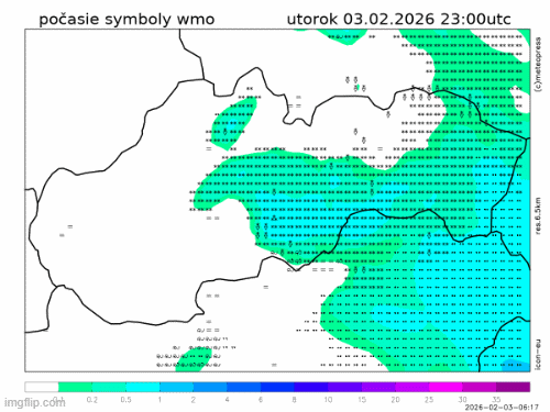 Obr. 5: Predpoveď počasia podľa modelu ICON. Vysvetlenie jednotlivých symbolov nájdete na stránke.