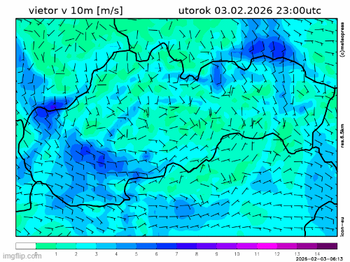 Vietor zostane juhovýchodný až južný, na západe lokálne až východný. Práve na západe môže ojedinele dosiahnuť do 35, v nárazoch do asi 60 km/h.