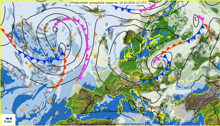 Obr.1: Synoptická situácia – sobota (18. 10.)