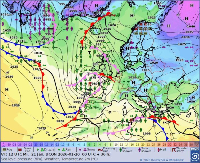 Obr. 1: Synoptická situácia – streda (21. 1.)