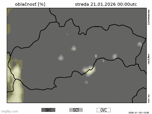 Obr. 2: Predpokladaný vývoj oblačnosti na Slovensku v stredu(21. 1.) podľa modelu ICON-EU