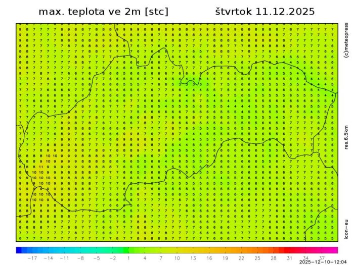 Obr. 6: Predpoveď maximálnej dennej teploty podľa modelu ICON