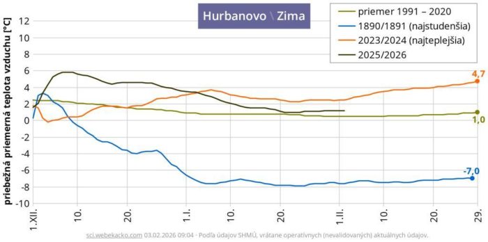 Počas januára 2026 bolo pozorovaných viacero zaujímavostí, vzhľadom na teplotnú stránku. Napríklad 9.1. bola nameraná najnižšia teplota za posledných 5 rokov. Zhruba na polovici územia teplota poklesla pod -15°C, lokálne, najmä na strednom Slovensku, bolo aj pod -20 °C. Najnižšie teplota poklesla vo Vígľaši – Pstruši, kde ráno namerali -25,6 °C. Usadený suchý a chladný, pôvodom arktický vzduch v našej oblasti sa vyznačil aj ďalšími pozorovanými javmi. V Hurbanove teplota nestúpla nad 0°C od 5.1.2026 až do 14.1.2026, čo znamenalo takmer 10 ľadových dní v rade (Tmax menej ako 0°C). Pre Hurbanovo je to ojedinelý jav, pretože naposledy podobná séria, aspoň 10 ľadových dní v rade, bola pozorovaná vo februári v roku 2012.