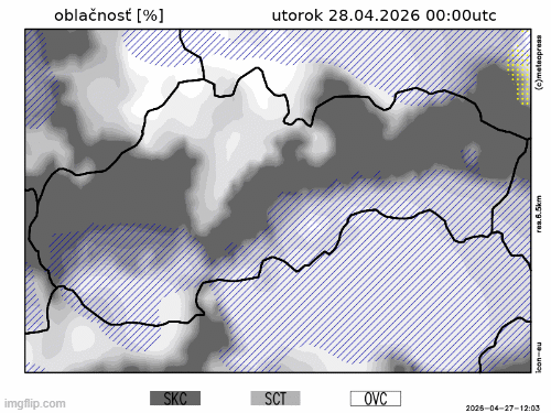 Do našej oblasti bude od severozápadu zasahovať tlaková výš so stredom nad Severným morom. Zároveň postúpi od severu nad Ukrajinu a východné Poľsko studený front spojený s tlakovou nížou nad západným Ruskom.