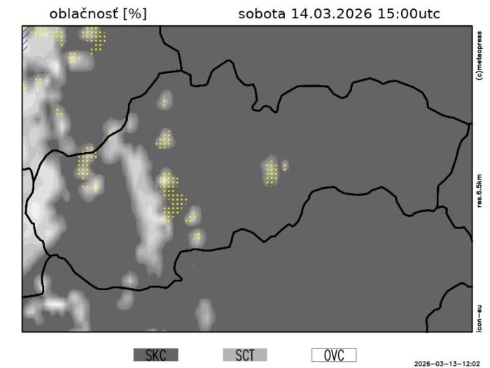 Obr. 2 Vývoj oblačnosti podľa modelu ICON-EU.