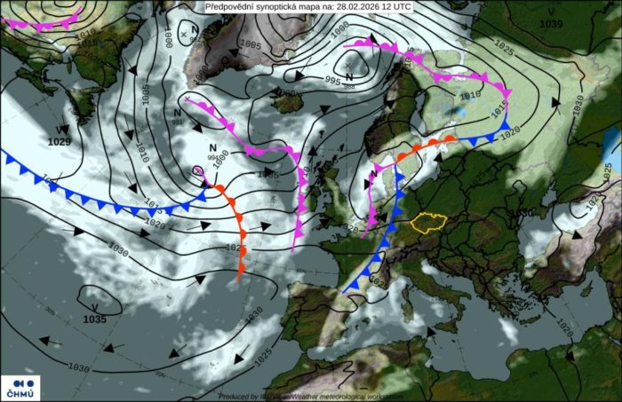 Obr. 1: Synoptická situácia – sobota (28. 2.)