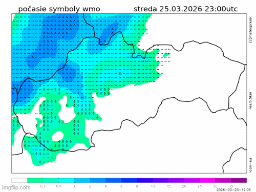 Obr. 5: Predpoveď počasia podľa modelu ICON na štvrtok, 26. marca dopoludnia. Vysvetlenie jednotlivých symbolov nájdete na stránke.