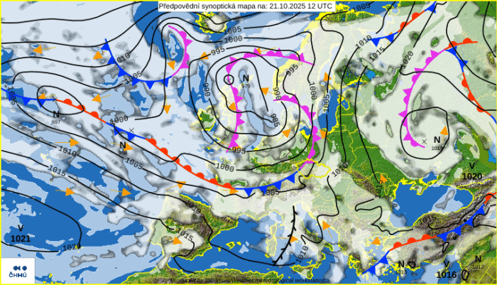 Obr.1: Synoptická situácia – utorok (21. 10.)