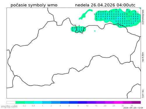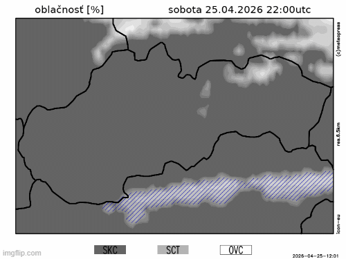 Práve na severe sa ojedinele očakávajú slabšie zrážky, prechodne už od cca. 700 m n. m snehové.