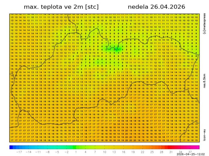 Obr. 3: Predpoveď maximálnej dennej teploty podľa modelu ICON.