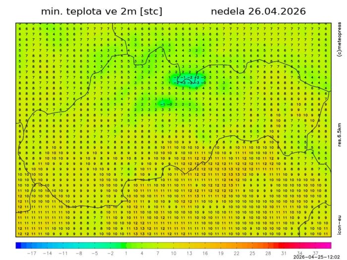 Obr. 2: Predpoveď minimálnej teploty podľa modelu ICON.