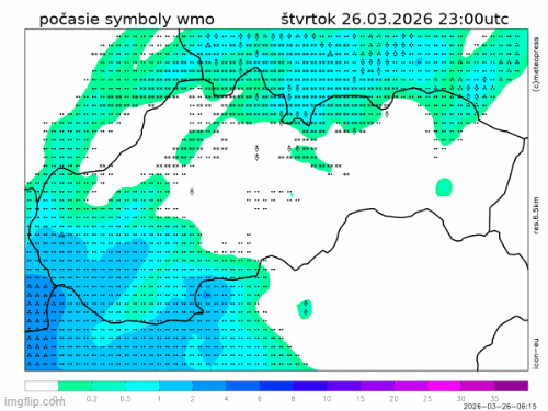 Obr. 4: Predpoveď počasia podľa modelu ICON. Vysvetlenie jednotlivých symbolov nájdete na stránke.