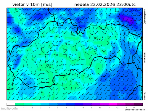 Obr. 6: Predpoveď smeru a priemernej rýchlosti vetra podľa modelu ICON.