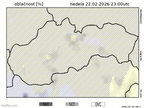 Na viacerých miestach očakávame dážď alebo prehánky. Snežiť bude až vo vysokých horských polohách, na krajnom severovýchode od asi 800 m n. m. Spočiatku sa nedá na severe, napr. v oblasti Spiša, vylúčiť lokálne poľadovica.