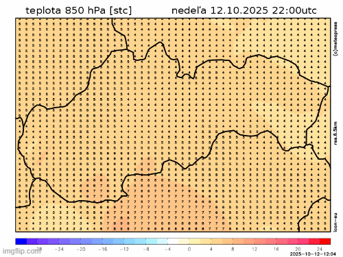 Obr. 3: Predpoveď teploty vo výške približne 1500 m n. m. podľa modelu ICON.