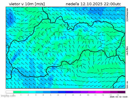 Vietor zostane prevažne severozápadný až severný. Jeho priemerná rýchlosť bude najvyššia na juhovýchode Slovenska kde dosiahne do 25, v nárazoch do asi 40 km/h.