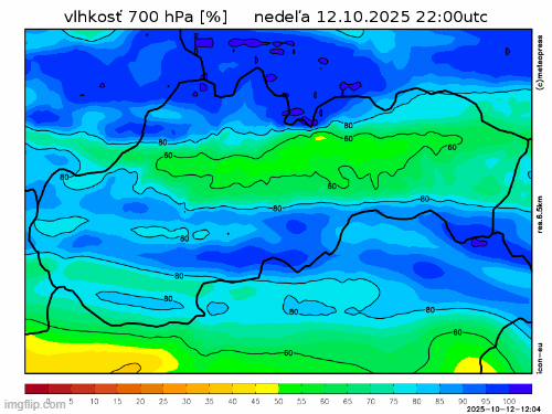 Obr. 5: Predpoveď vlhkosti vo výške približne 3 km podľa modelu ICON.