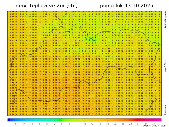 Maximá dosiahnu na severe už len okolo 11, na juhu ešte stále miestami až okolo 17 °C.