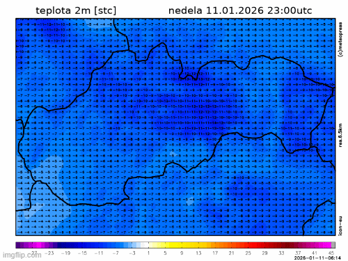 V noci sa ochladí zväčša na -7 až -12, ojedinele až k -15 °C. V priebehu dňa sa oteplí na -7 až -2, na severe môže byť aj chladnejšie.