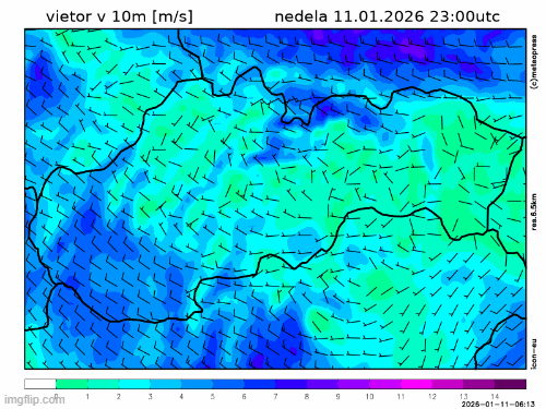 Obr. 5: Predpoveď smeru a priemernej rýchlosti vetra podľa modelu ICON.