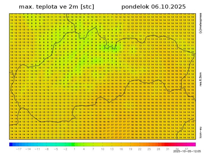Obr. 5: Predpoveď maximálnej dennej teploty podľa modelu ICON.